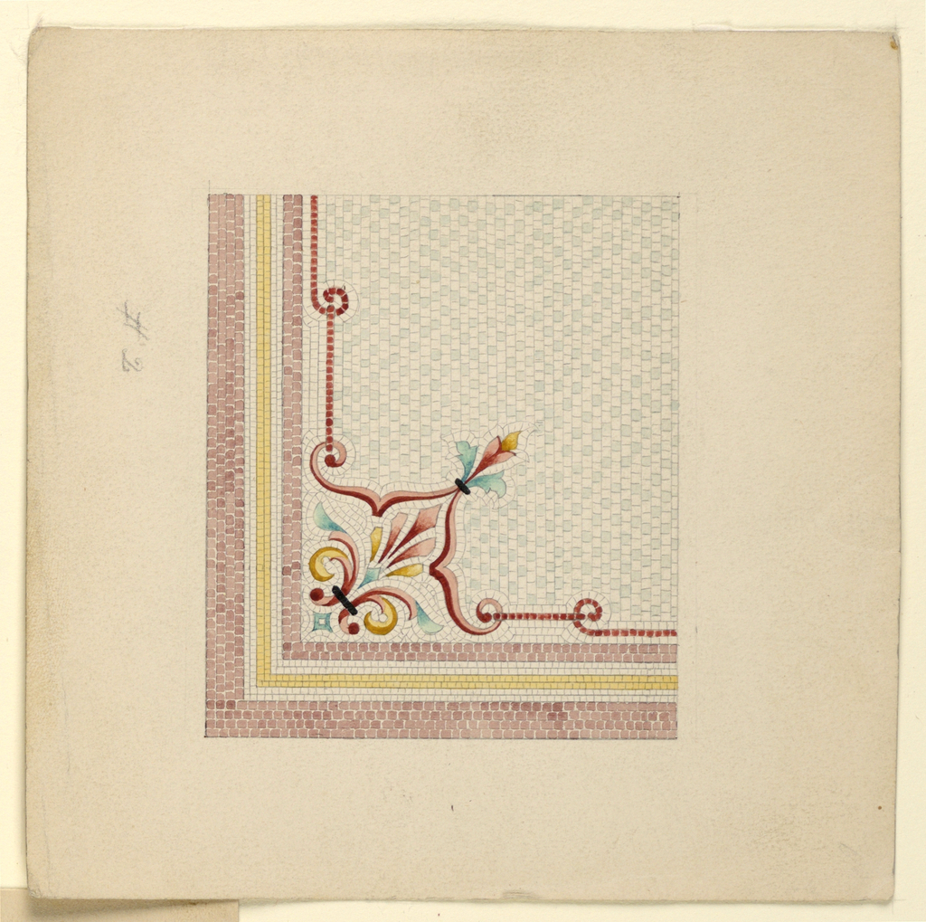 <ref name=CH>{{cite web |url=https://www-4.collection.cooperhewitt.org/objects/18802271/ |title=Drawing, Corner Design for Mosaic Floor |author=Cooper Hewitt, Smithsonian Design Museum |accessdate=19 December 2025 |publisher=Smithsonian Institution}}</ref>