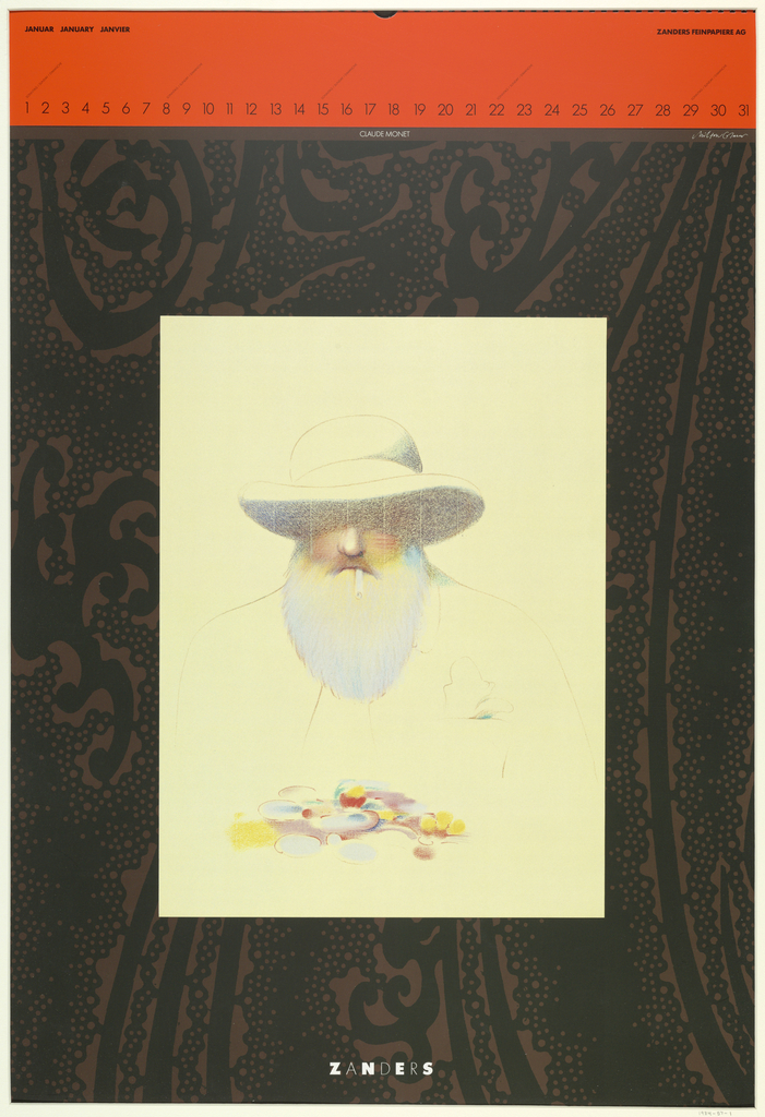 The West German Zanders paper company has produced and published calendars for over twenty years to promote their paper stock. This calendar features Glaser’s interpretations of famous artist’s self-portraits in their respective styles.