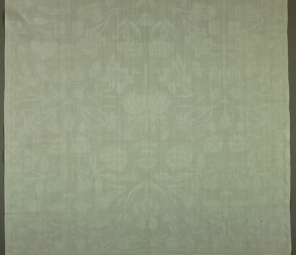 This is a Napkin. We acquired it in 1984. Its medium is linen and its technique is damask. It is a part of the Textiles department.
