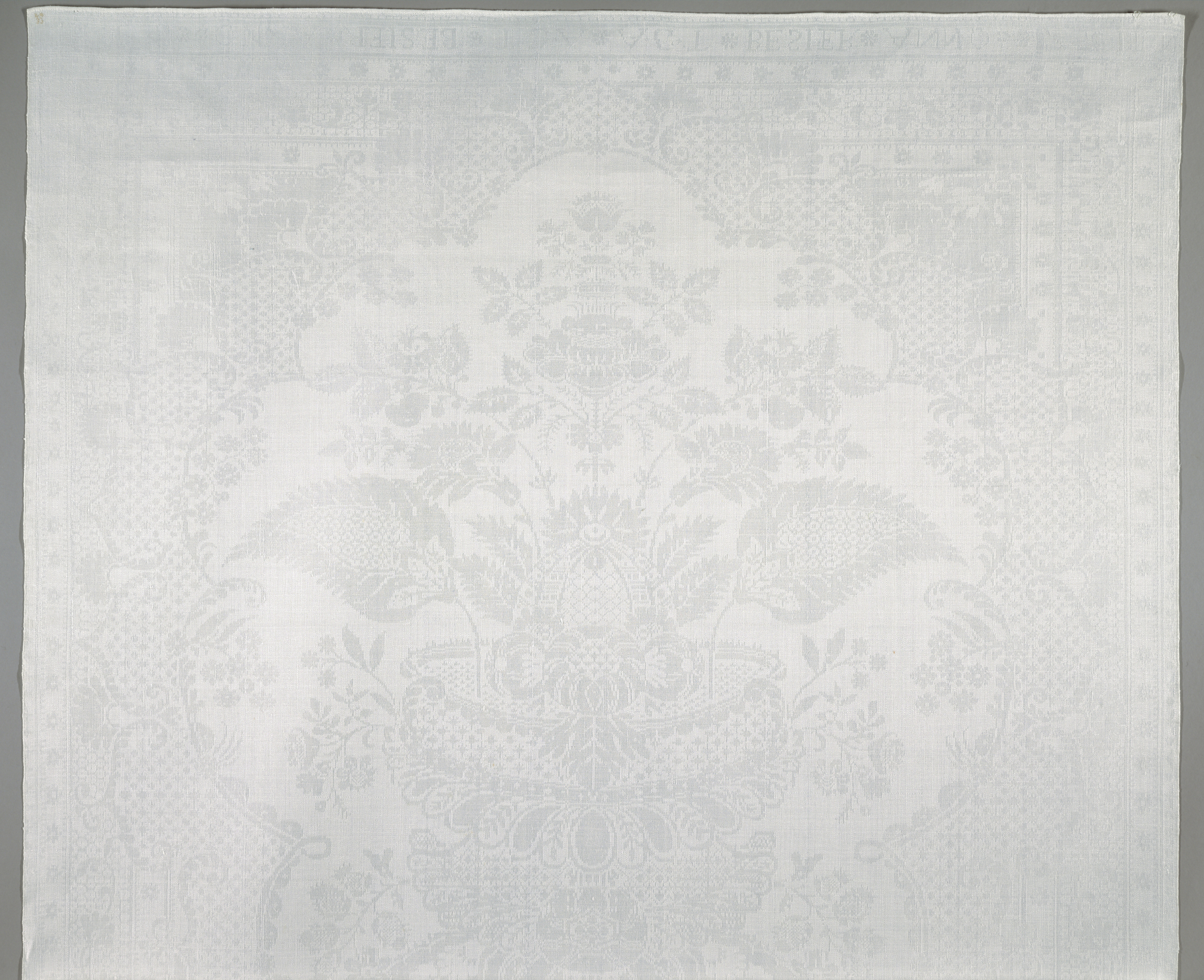 This is a Napkin. It is dated 1736 and we acquired it in 1984. Its medium is linen and its technique is 4&1 satin damask. It is a part of the Textiles department.