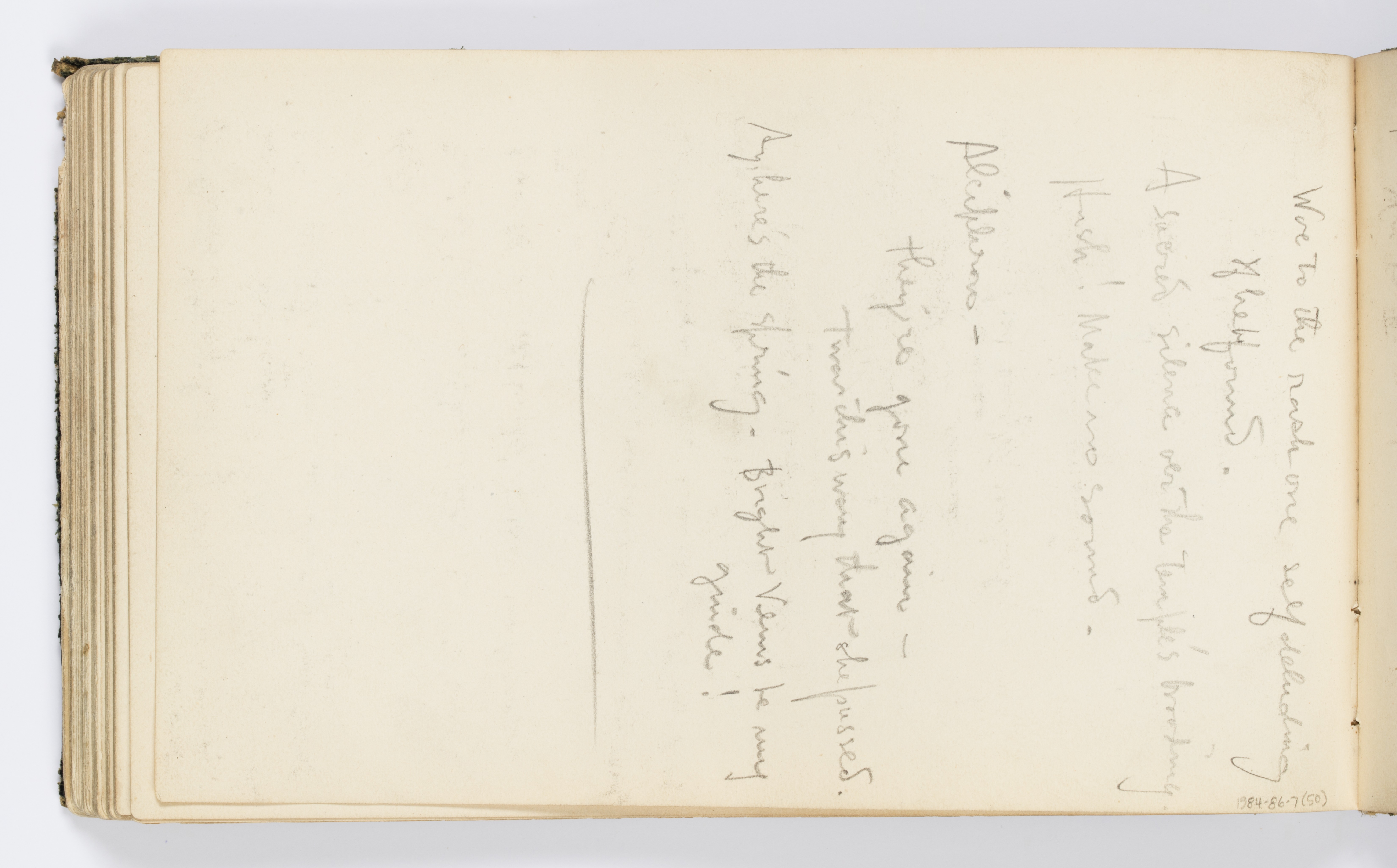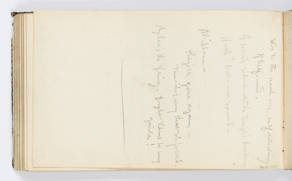 Recto: Inscribed in graphite, upper edge: Scenes for Second and Third Acts –; center: Front of Temple - Second Act –; notation in lower drawing, at left: door; notation in lower drawing, at center: veil here; lower left: Subteranian [sic] –