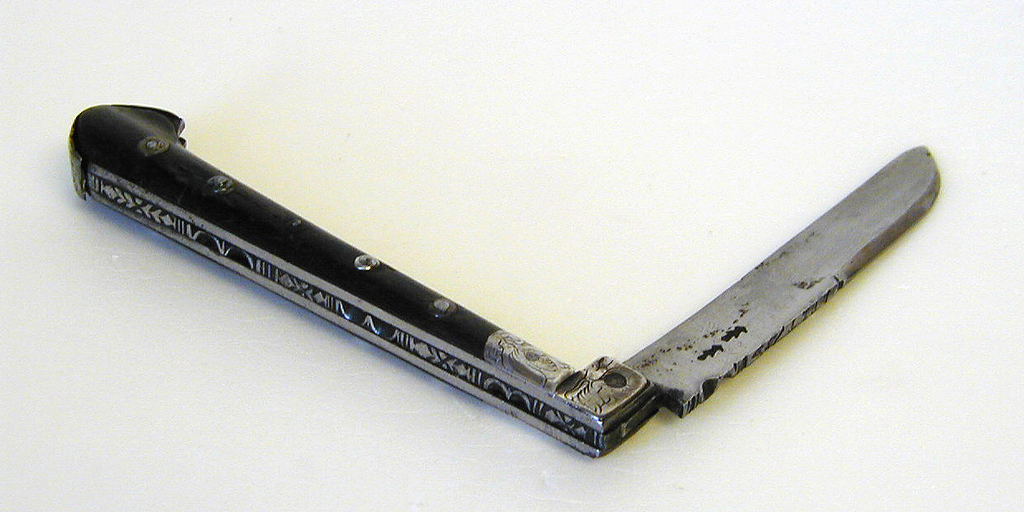 On blade: [1] two arrow fletching or feather-like symbols, impressed (unidentified cutler's marks)