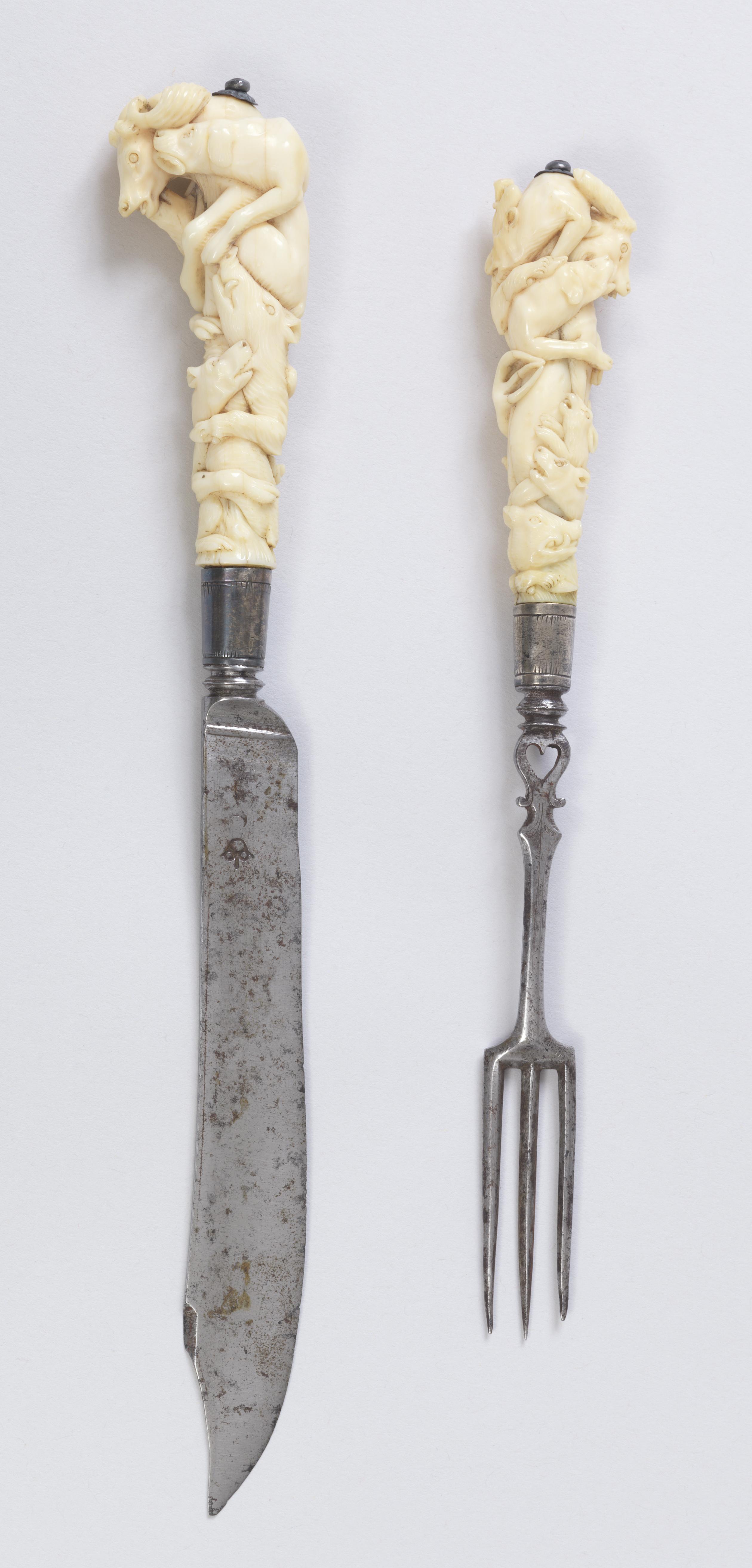 See more objects with the tag dining, animals, dogs, hunting, eating, carved, cutting, cutlery, knives.
