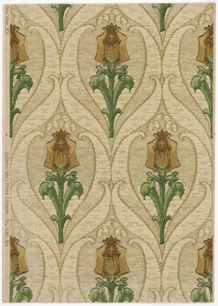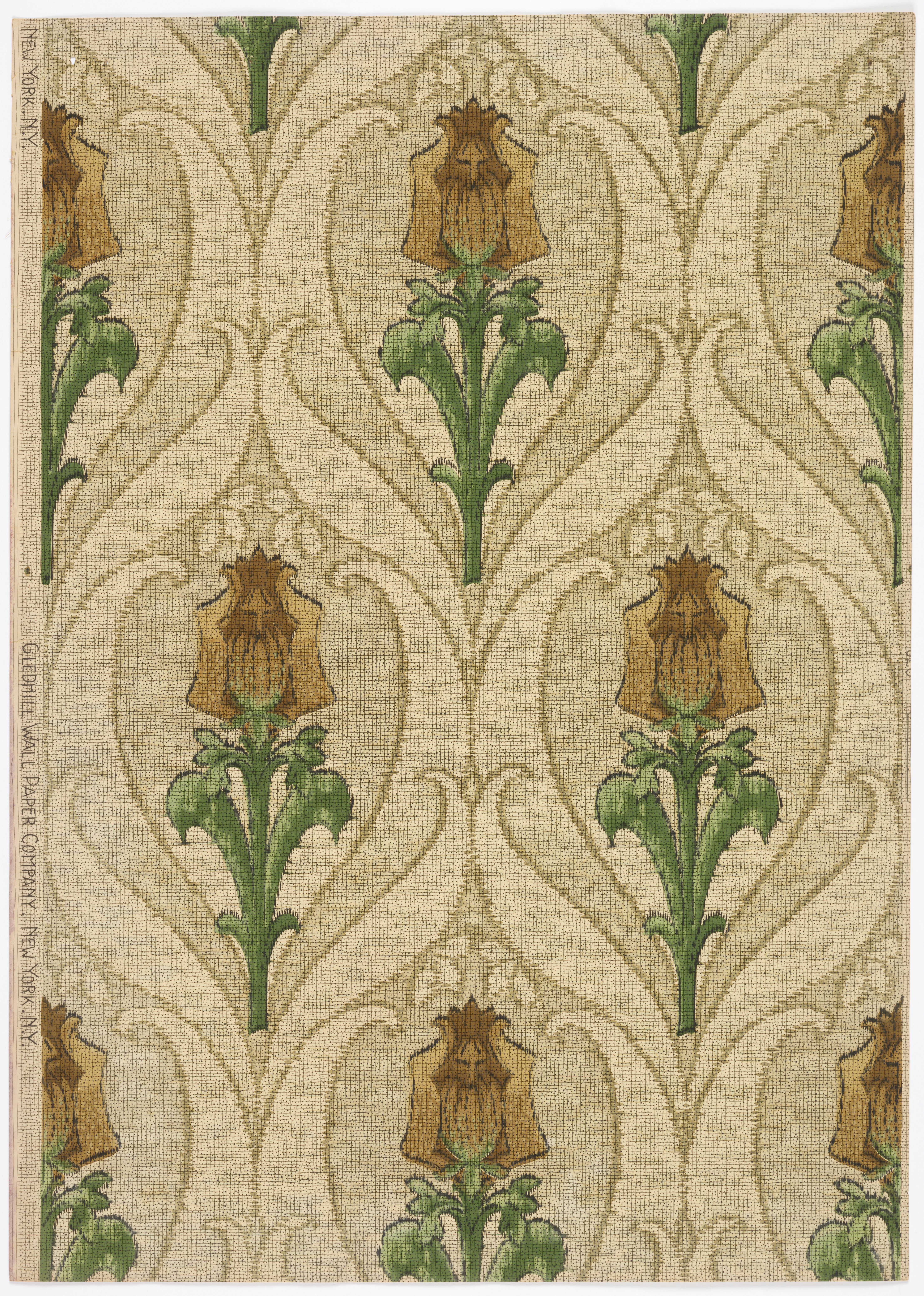 This is a Sidewall - sample. It was made by Gledhill Wall Paper Co.. It is dated 1906–07 and we acquired it in 1985. Its medium is machine-printed. It is a part of the Wallcoverings department.