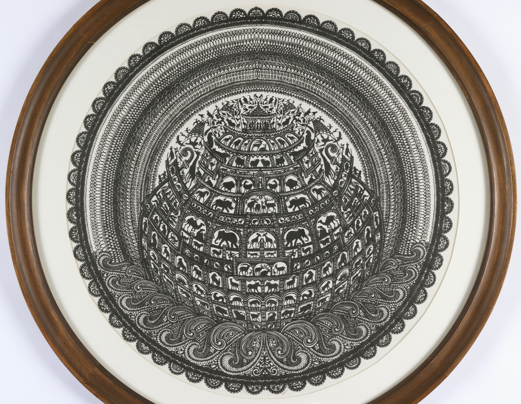 The craft of paper cutting has been practiced widely and continuously in Switzerland since the eighteenth century. Traditionally, the paper cuts were religious in subject matter (“cloister art”) or depicted the Swiss landscape and the animals and mountain folk who occupied it. Several of today’s paper cutters in Switzerland are adapting traditional subjects in a more personal manner to create designs in cut paper that are innovative and varied. Among them, Ernst Opplinger is the most spectacular form the point of view of the refinement of cutting, the large size, and the sophistication of the design. As the Cooper-Hewitt collection of cut paper has no example by Swiss craftsmen in this medium, we are anxious to acquire this superb sheet.