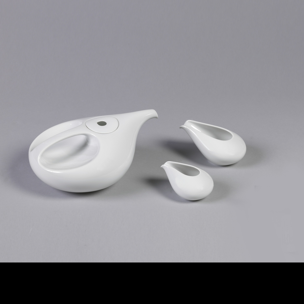 This is a sugar bowl. It was designed by Luigi Colani and manufactured by Rosenthal Glas und Porzellan Aktiengesellschaft and made for Studio-Line (Division of Rosenthal). It is dated 1971 and we acquired it in 1985. Its medium is molded and glazed porcelain. It is a part of the Product Design and Decorative Arts department.
