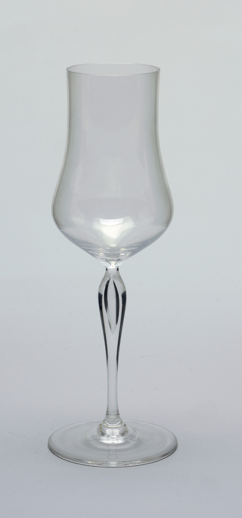 This is a Fruit brandy glass. It was designed by Michael Böhm and manufactured by Rosenthal Glas und Porzellan Aktiengesellschaft. It is dated ca. 1983 and we acquired it in 1985. Its medium is glass. It is a part of the Product Design and Decorative Arts department.