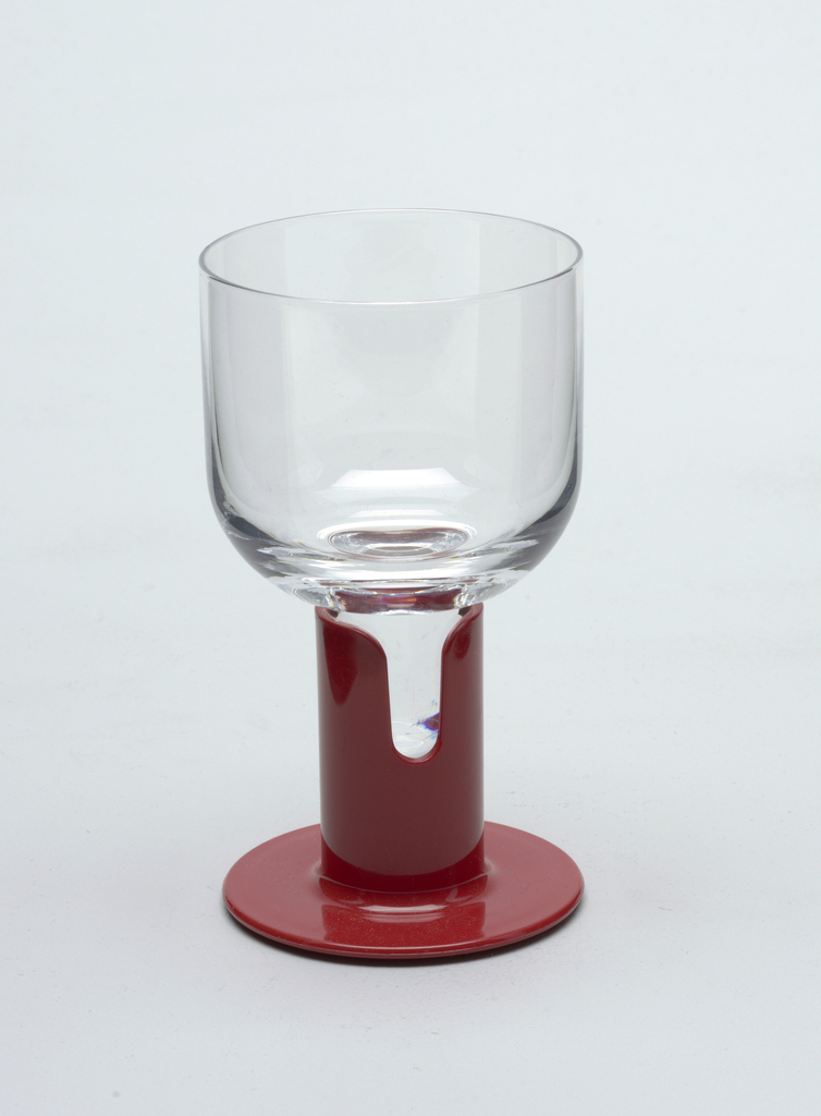 This is a Wine glass. It was manufactured by Iittala Glassworks. It is dated 20th century and we acquired it in 1985. Its medium is glass, plastic. It is a part of the Product Design and Decorative Arts department.