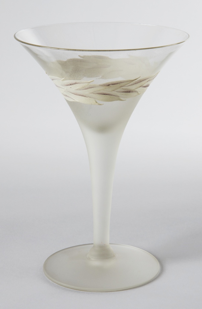 This is a martini glass. It was designed by Dorothy Thorpe and distributed by Dorothy C. Thorpe, Inc.. It is dated ca. 1940 and we acquired it in 2018. Its medium is glass, paint. It is a part of the Product Design and Decorative Arts department.