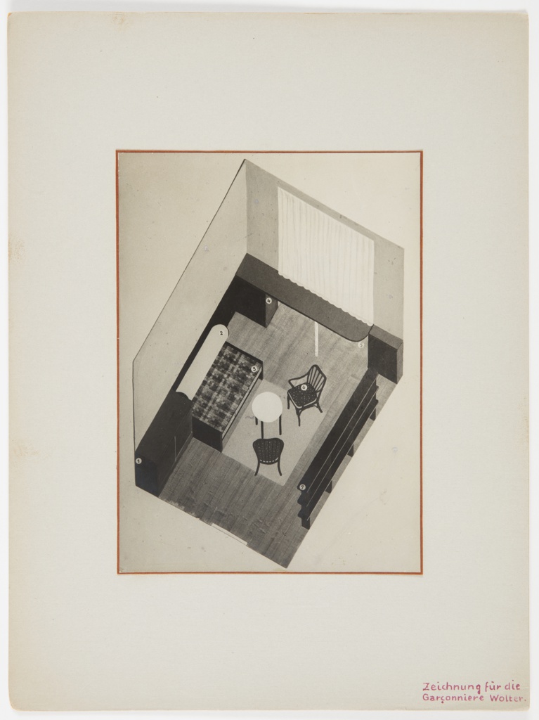 Photograph, Zeichnung für die Garçonniere Wolter, Prague; Designed by Margarethe Fröhlich (Austrian, 1901–2001); gelatin silver print, mounted on board; 28.4 × 21.2 cm (11 3/16 × 8 3/8 in.); Gift of Margarethe Fröhlich; 2019-14-23