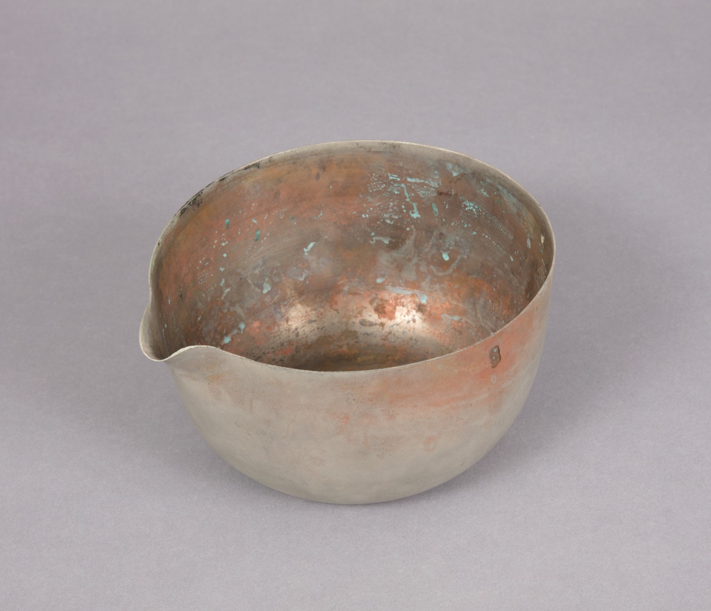 This is a pan prototype. It was designed by Eva Zeisel and manufactured by Chantal Cookware Corp.. It is dated 1948 and we acquired it in 2019. Its medium is metal. It is a part of the Product Design and Decorative Arts department.