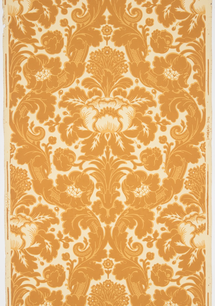 Sidewall, Sidewall in The Vendome Pattern; block-printed paper; H x W (Roll): 56.5 cm (22 1/4 in.) width; Gift of Long Island Museum; 2021-12-3