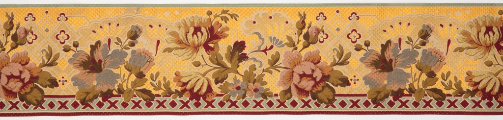 This is a Border. It is dated 1875–1890 and we acquired it in 2021. Its medium is machine-printed paper, embossed. It is a part of the Wallcoverings department.