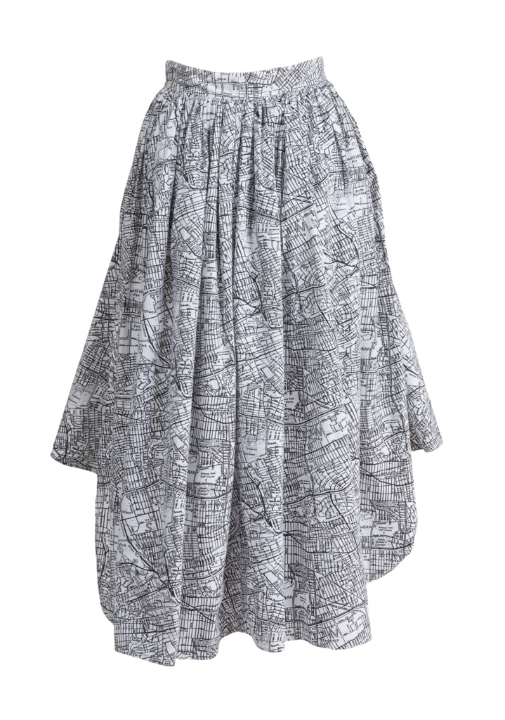 Skirt, WilliWear Map Print; Designed by Willi Smith; Made for WilliWear Ltd.; cotton; Transfer from Exhibitions Department; 2021-46-1