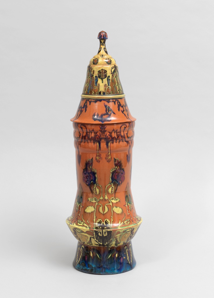 This is a garniture. It was designed by Theodorus Adriaan Christiaan Colenbrander. It is dated 1889 and we acquired it in 1992. Its medium is earthenware. It is a part of the Product Design and Decorative Arts department.