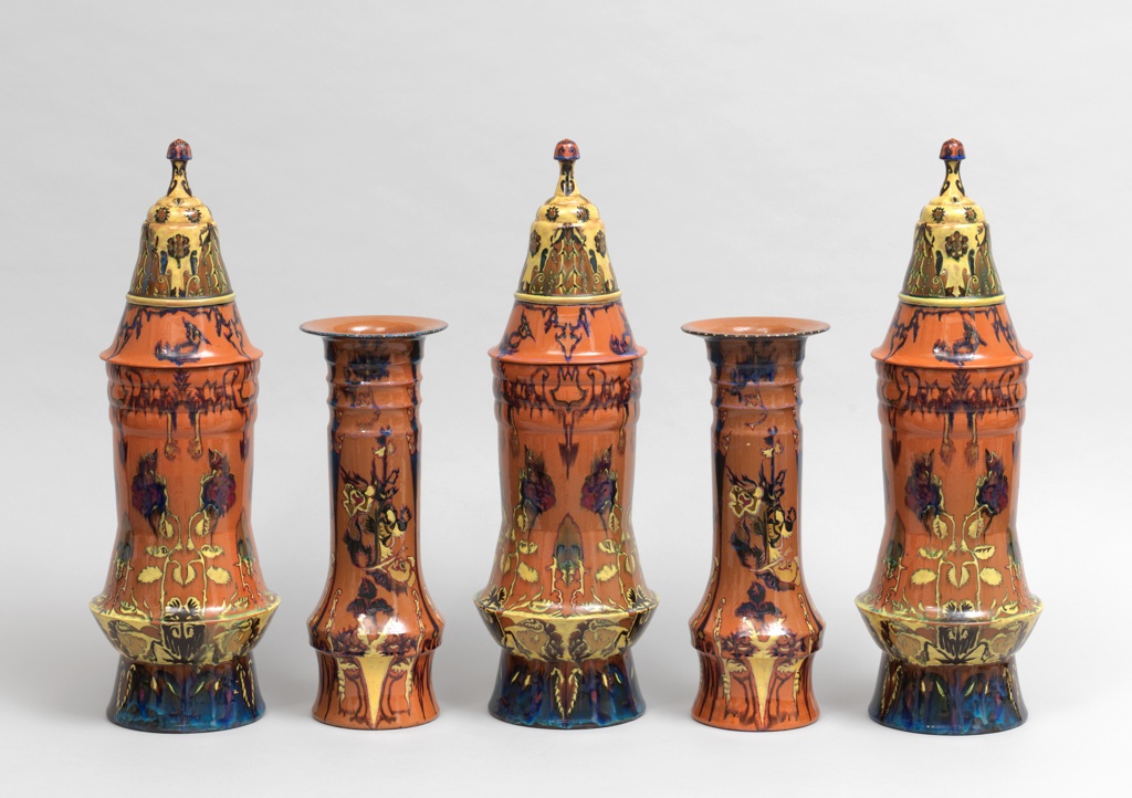 <ref name=CH>{{cite web |url=https://www-4.collection.cooperhewitt.org/objects/2318804859/ |title=Garniture of Five Vases Garniture, 1889 |author=Cooper Hewitt, Smithsonian Design Museum |accessdate=19 December 2025 |publisher=Smithsonian Institution}}</ref>