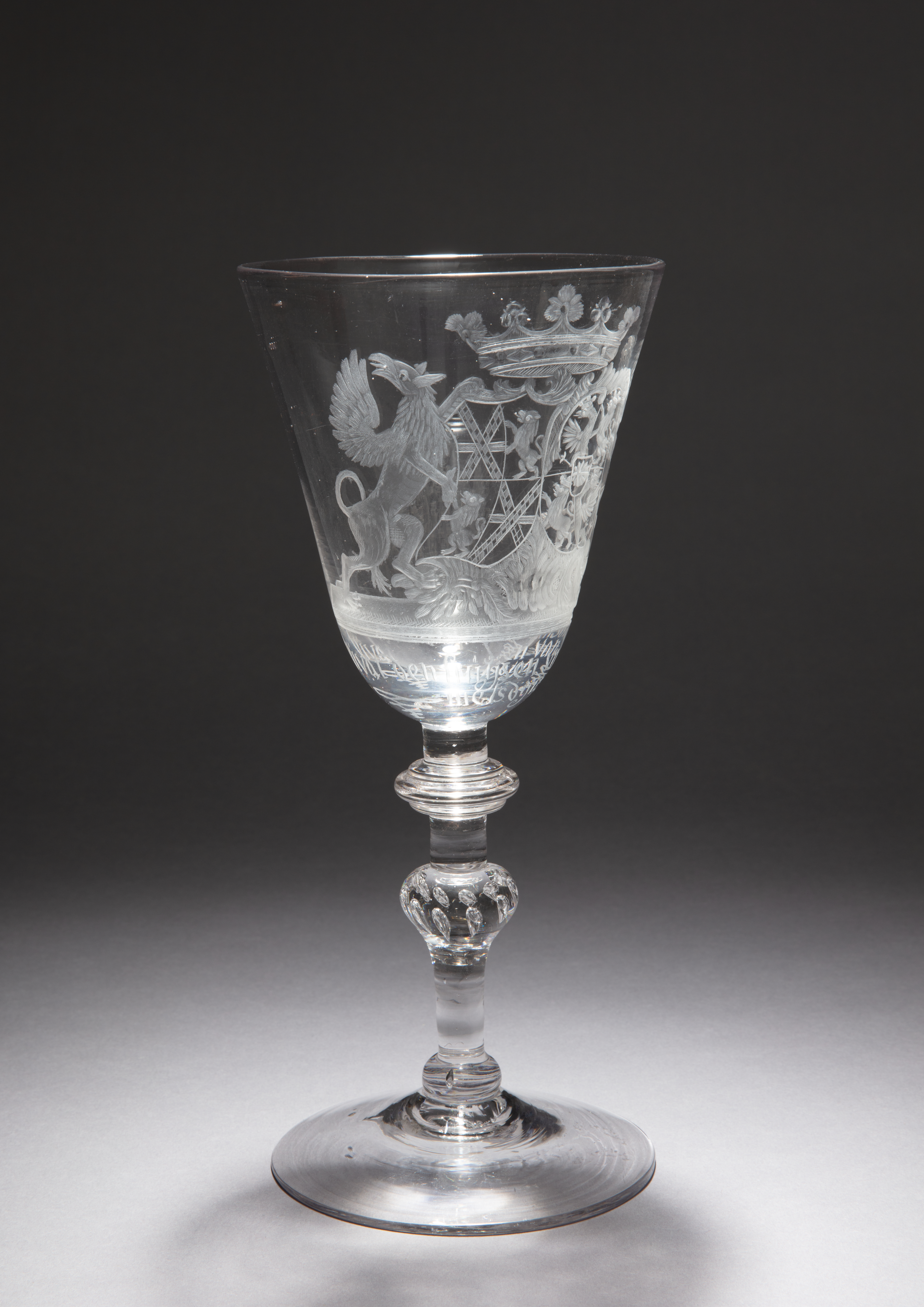 Goblet Commemorating François Cornelis van Aerssen van Sommelsdijk (1725–93) and his wife Everdina Petronella (1730–94), countess of Hogendorp Drinking Glass; lead glass; H x diam.: 26.2 × 12 cm (10 5/16 × 4 3/4 in.); Gift of Beatrice Taplin; 2021-9-3