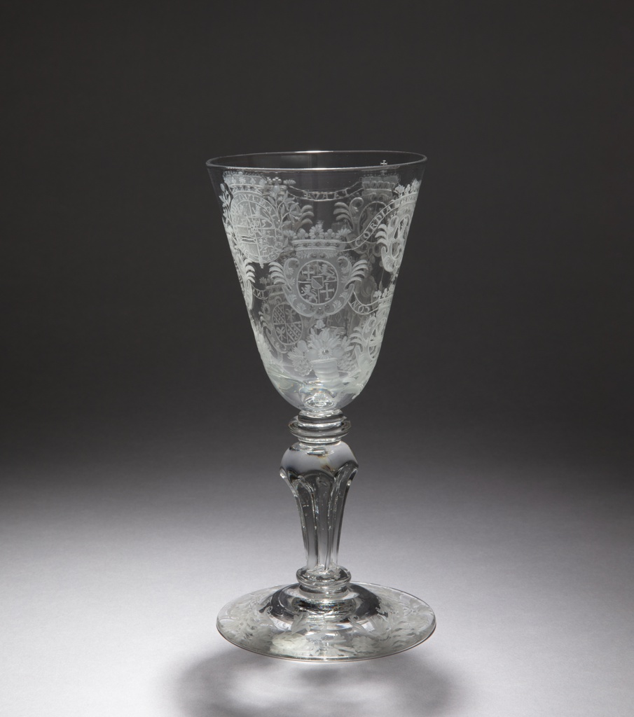 This is a drinking glass. It is dated 1747 and we acquired it in 2021. Its medium is lead glass. It is a part of the Product Design and Decorative Arts department.
