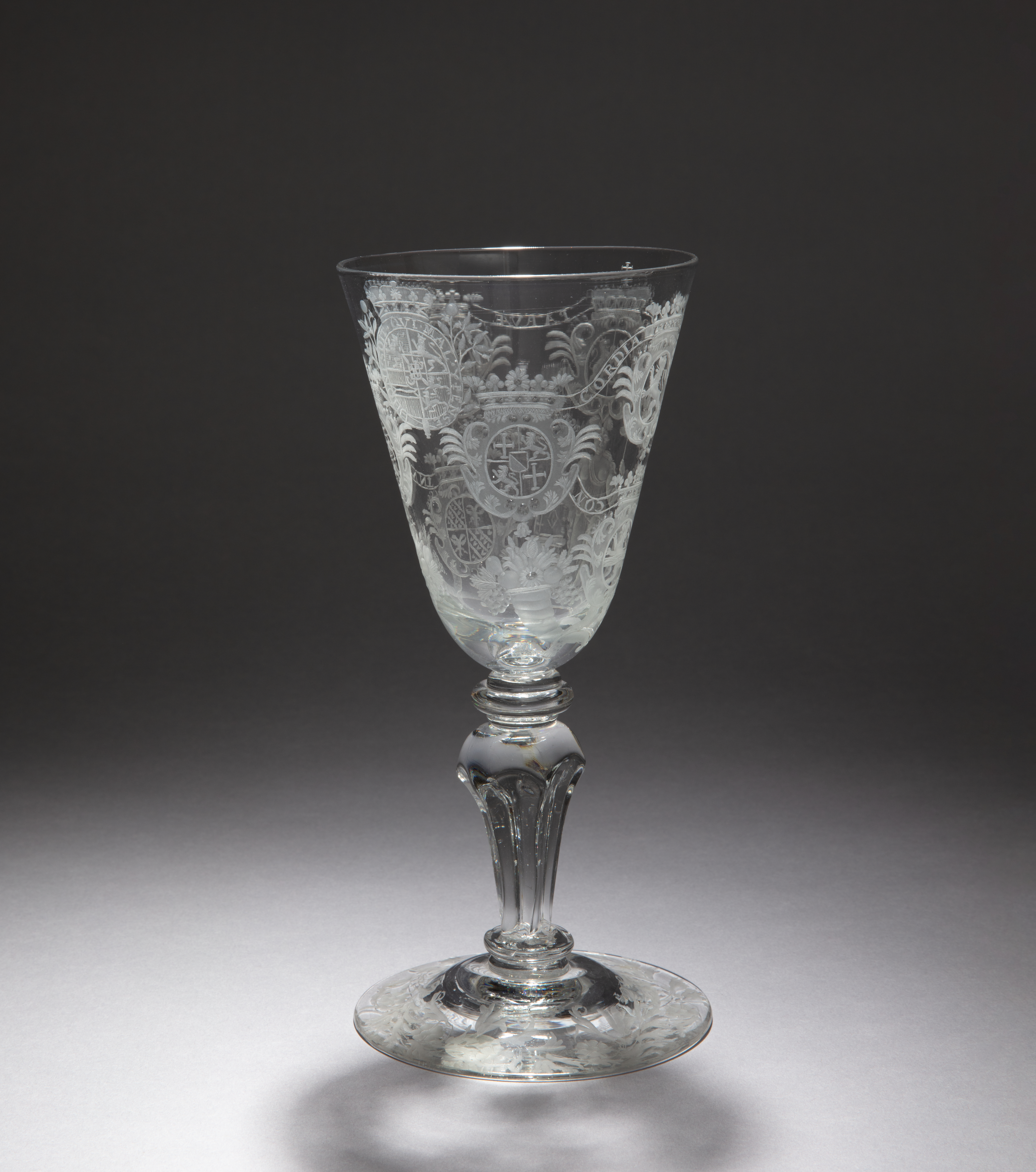 Goblet Commemorating the Seven United Provinces and Prince William IV, Governor of the Netherlands Drinking Glass; lead glass; H x diam.: 22.5 × 10.4 cm (8 7/8 × 4 1/8 in.); Gift of Beatrice Taplin; 2021-9-7