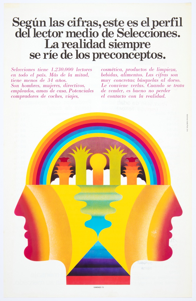 Poster, Selecciones del Readers Digest; Edgardo Giménez (Argentinian, born 1942); offset lithograph on paper; L x W: 53.3 × 34.3 cm (21 in. × 13 1/2 in.); Gift of the Institute for Studies on Latin American Art (ISLAA); 2021-29-17