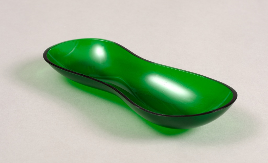 This is a Bowl. It was designed by Eva Zeisel and manufactured by Clover Box and Manufacturing Company. It is dated 1947 and we acquired it in 2023. Its medium is acrylic. It is a part of the Product Design and Decorative Arts department.