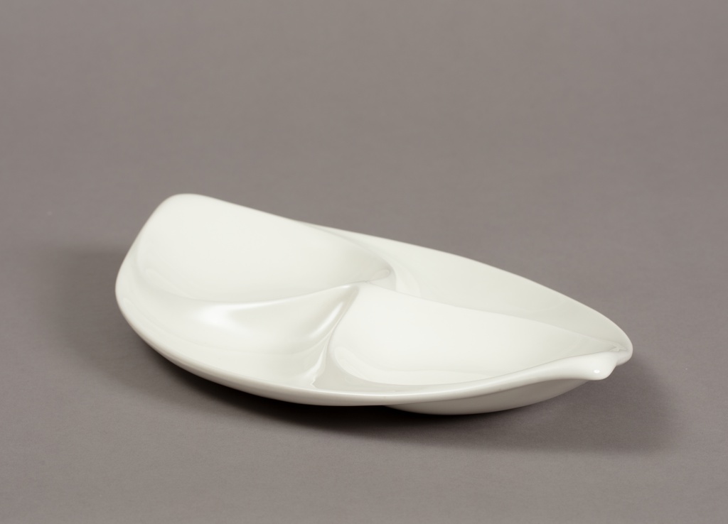 Hallcraft Century Relish Dish Dish; Designed by Eva Zeisel (American, b. Hungary, 1906–2011); Manufactured by Hall China Company (United States); earthenware; H x W x D: 5.7 × 36.8 × 21.6 cm (2 1/4 × 14 1/2 × 8 1/2 in.); Museum purchase from Charles E. Sampson Memorial Fund; 2024-15-11