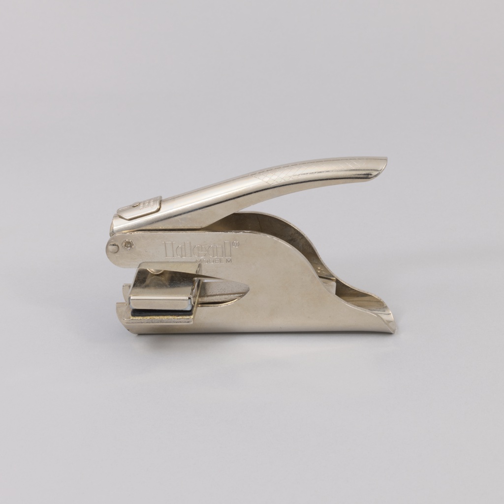 This is a embosser. It was designed by Tobias Wong. It is dated late 1990s and we acquired it in 2024. Its medium is metal. It is a part of the Product Design and Decorative Arts department.