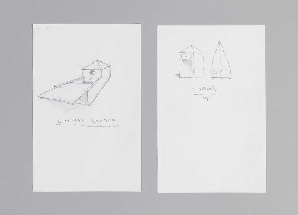 Drawing, Sketch of Two Structures; Tobias Wong (1974–2010); graphite on paper; H x W: 20 × 13 cm (7 7/8 × 5 1/8 in.); The Tobias Wong Collection, Gift of Phyllis Chan and Gordon Wong; 2024-4-61
