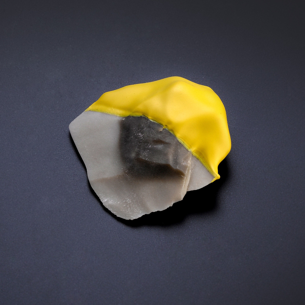 Drach and Ganchrow reimagine man’s oldest (and perhaps most popular) designed object for the 21st-century with these stone tools from the team’s BC-AD series. Made from flint sourced in Israel’s Negev desert, each blade is hand-knapped using a softer stone—though traditionally, bone or antler could have also been used to hone the sharp blade. In a contemporary twist, these tools are then dipped in yellow latex, pointing to the designated ‘hand-contact’ area and recalling objects from a modern-day toolbox, including electric drills and plier grips. Other objects in the series include stone blades with custom-fitted 3D-printed handles, combining man’s oldest and newest technologies into one truly unique set of tools.