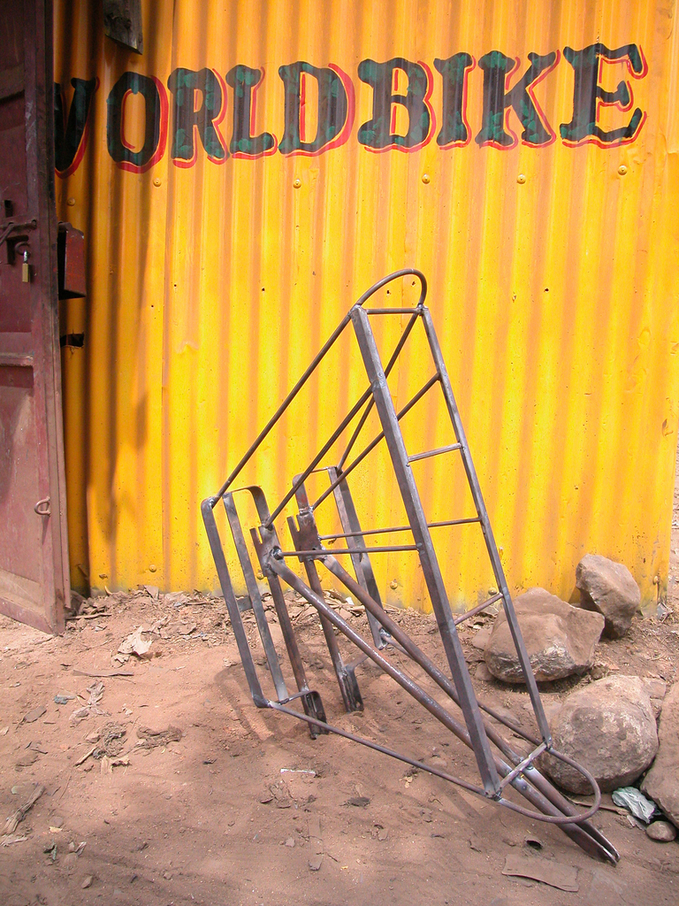 This is a Project. It was designed by WorldBike, Adam French (first phase design), Ed Lucero with contributions from Paul Freedman, Matt Snyder, Ross Evans and manufactured by WorldBike and Moses Odhiambo's workshop. It is dated 2002–05. Its medium is mild steel, woven papyrus passenger cushion.