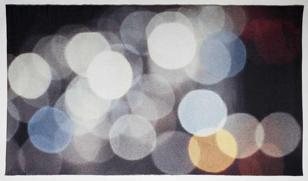 Rush Hour 2 is part of a series "Traces of Light" – a collaboration with her filmmaker/director husband, Bo Hovgaard – that captures big cities at night. In this particular work Hovgaard’s video camera is unfocused as he captures the light in Shanghai from driving cars and advertising signs. Sorensen then selects individual images from the video and translates photographic pixels into threads, video recordings into weavings.