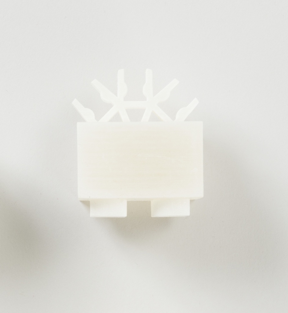 Free Universal Construction Kit Construction Toy; Designed by Golan Levin (American, b. 1972), Shawn Sims (American, b. 1986); Printed by Scott Summit (American, b. 1967); Manufactured by 3D Systems; USA; resin ; H x W x D (largest connector): 10.8 x 9.8 x 8.6 cm (4 1/4 x 3 7/8 x 3 3/8 in.) All remaining connectors are under 7.6 x 7.6 x 7.6 cm (3 in. x 3in. x 3 in.) Sample object made with kit: 12.7 x 12.7 x 12.7 cm (5 in. x 5 in. x 5 in.); Gift of 3D Systems; 2016-2-1-1/57