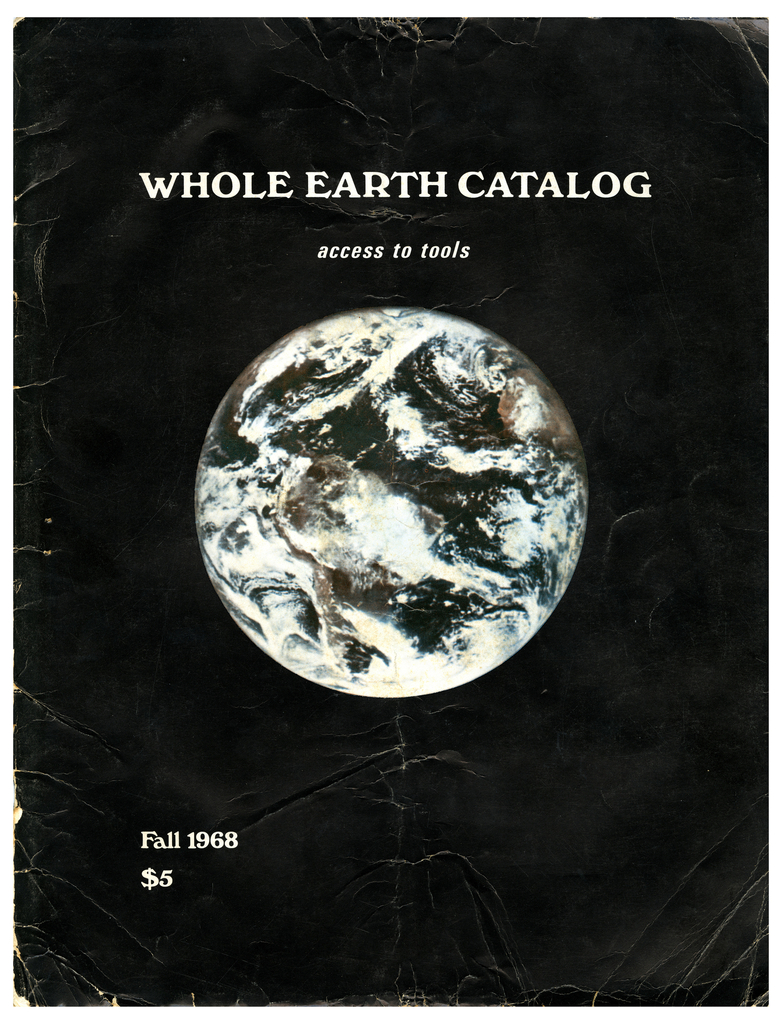 In 1968, writer Stewart Brand launched his radical, offbeat paperback journal, the Whole Earth Catalog. A precursor of the World Wide Web, today’s global information-distribution system, the publication was a user-generated database of disparate tools from varied sources that celebrated small-scale technologies as a way for individuals to improve their lives. It was inspired by the era’s counter-culture movement, which sought a social order that encouraged individual freedom, egalitarianism, and economic independence. The cover of the first edition from fall 1968 featured an early satellite image of Earth from space with the words "WHOLE EARTH CATALOG" and access to tools silhouetted above. This iconic image conveyed a graphically powerful message of interconnectedness and the Catalog achieved cult status. By 1971, it had sold more than a million copies and included over 1,000 different entries, ranging from meditation guides and machines to potters’ wheels, camping gear, and self-help tips. It was published sporadically until 1998.