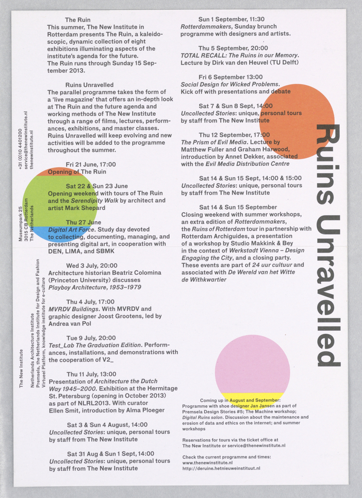 Mailer, New Institute Mailer; Designed by Karel Martens (Dutch, b. 1939); Netherlands; offset lithograph on paper; 30.8 x 22 cm (12 1/8 x 8 11/16 in.); Gift of Karel Martens; 2014-2-14