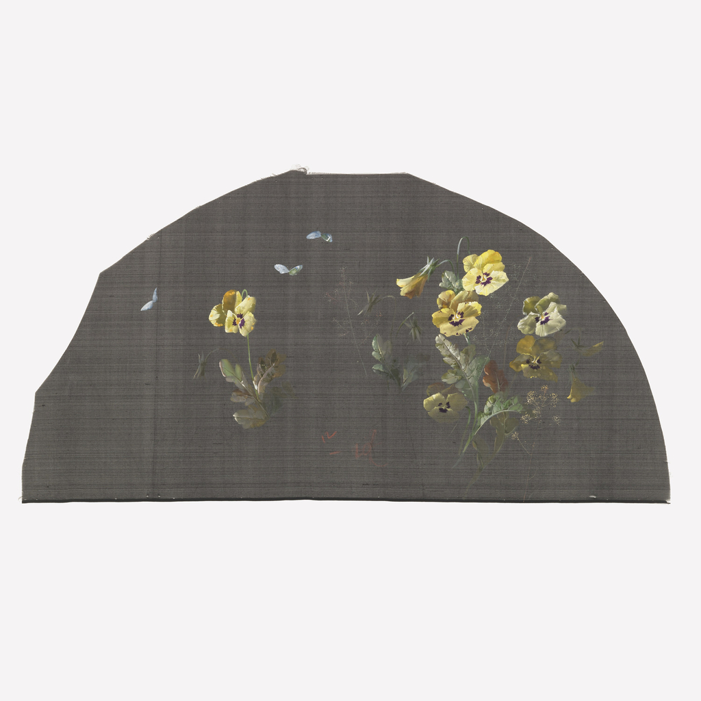 This is a Fan leaf. It is dated late 19th–early 20th century and we acquired it in 1968. Its medium is silk painted with gouache. It is a part of the Textiles department.