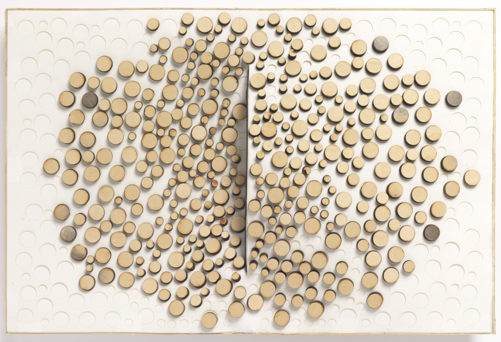 Studio Gang’s concern with architecture serving a societal need as well as the topographical origin of design is no better exemplified than in the Arcus Center for Social Justice Leadership in Kalamazoo, Michigan. Located in a forested section of Kalamazoo College, this center was designed to engage in conferences and discussions about how to create a more just society. The trefoil structure derives from the topography: one side faces an old-growth grove of trees, the second looks to the college campus, and the third faces a residential neighborhood. The gently curving walls suggest the convocation to take place within. The building’s construction is also based in the land. Studio Gang revived an old nineteenth-century masonry technique that uses local white cedar logs laid in a mortar bed. This type of sustainable construction keeps costs down and serves to insulate the building. The structure’s design development is conveyed in six drawings including an early plan for the structure’s three-part focus, the development of the plan, and three views of the building from the exterior. Also included in this gift is a stencil and print out of one of the tree’s growth rings used to mockup on a wall the scale of the structure and more interestingly, a model studying the insertion of a slit window created by warping the exterior walls. The Arcus Center is still in construction and is scheduled to open in spring 2014.