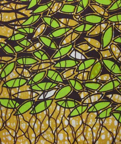 These types of fabrics were originally designed for the Indonesian market, the wax-resist process a mechanized version of batik. The fabrics found a more receptive audience in West Africa, and over time the design and coloration was adapted to this market, although effects unique to the wax process, like crackle and bubbles, are still apparent. The designs are created in the Netherlands through a unique collaborative process with traders—primarily women who run the open-air markets where the fabrics are sold. The traders can get an exclusive on a particular design or colorway, or suggest themes for designs. They also assign names to the designs, which may give them particular local resonance.