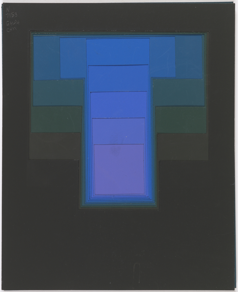 Swiss graphic artist Karl Gerstner has authored many books that illustrate his theories of typography, visual literacy and color. Karl Gerstner: Color Sound 15, the catalog for a 1973 exhibition at the Galerie Denise René in New York, includes a set of 12 vibrantly colored panels layered over a series of “T” shaped cut outs. The brilliance, placement, and blurred imagery of pigments of each plate gives the work a psychedelic quality. In this exhibition catalog, Gerstner explores relationships between sound and color, as well as the psychological aspects of color.