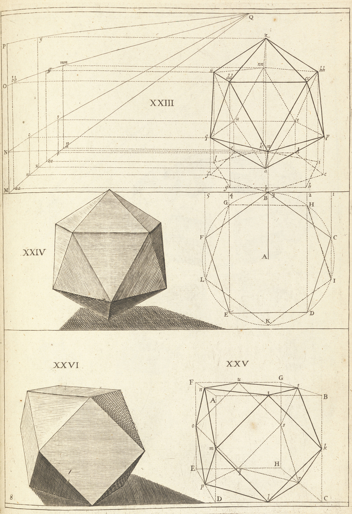 Nicéron was a mathematician, monk and artist. His famous book, The Curious Perspective, is his treatise on the practical applications of perspective. The plates from this book underline the intricate link between art and the fields of optics, geometry, and mathematics. Plate 8 specifically depicts the geometric properties of the shapes and how the angles and facades would be perceived.
