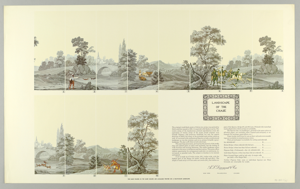 This is a Scenic - portfolio. It was manufactured by Diament & Co., A.L.. It is dated 1972 and we acquired it in 1972. Its medium is photography, screen print. It is a part of the Wallcoverings department.