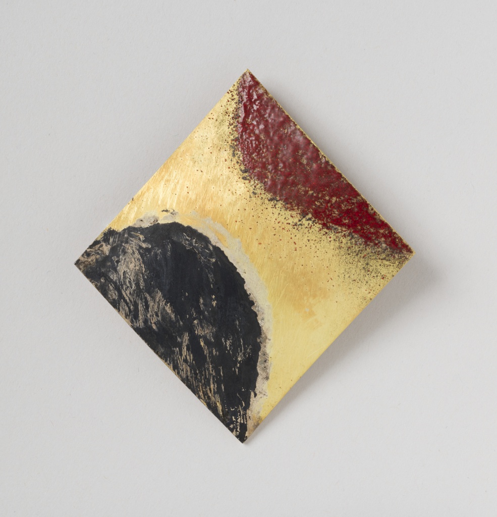 This is a brooch. It was designed by Graziano Visintin. It is dated 2002 and we acquired it in 2016. Its medium is gold, niello, enamel. It is a part of the Product Design and Decorative Arts department.