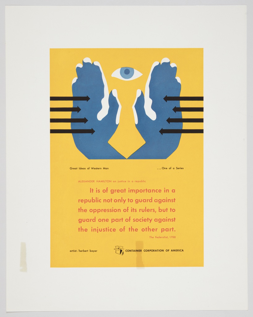 Print, Great Ideas of Western Man Featuring Alexander Hamilton; Designed by Herbert Bayer (American, b. Austria, active Germany and USA, 1900–1985); Client: Container Corporation of America (United States); offset lithograph on glossy white paper; 35.4 × 28 cm (13 15/16 in. × 11 in.); Museum purchase with funding provided by the Buddy Taub Foundation, Dennis A. Roach and Jill Roach Directors; 2016-54-10